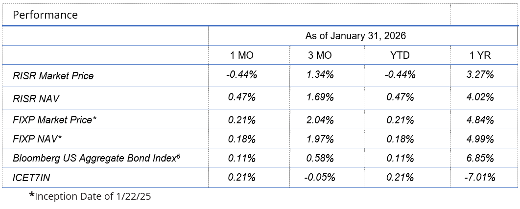 Please contact us to explore how RISR and FIXP might fit into your overall strategy, to help you manage risk while generating an attractive current yield. Best of luck to our investors in 2026!