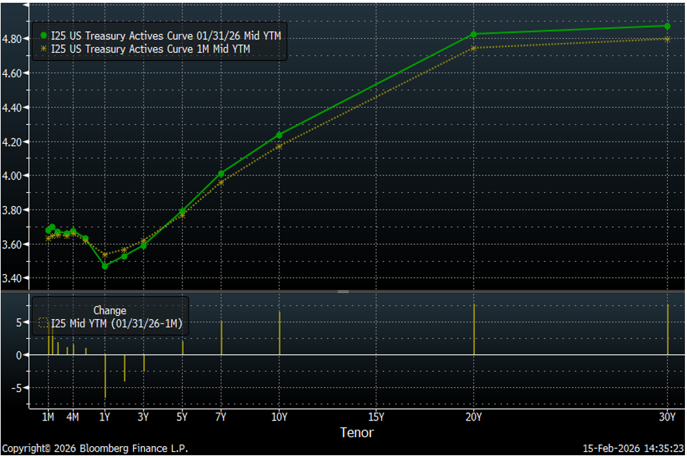 On balance, it seems the 2026 Fed will be slightly more accommodative than the 2024-25 Fed which cut rates by 175 bps. The risk-on/risk-off pendulum swings with each new economic release. But a resumption of short-term rate cuts, combined with a plan to reduce the size of the Fed’s balance sheet by selling longer maturity Treasury and MBS holdings, suggests a further steepening of the yield curve, especially if inflation continues to track above the Fed’s 2% target.
