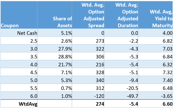 As we have noted in prior commentaries, RISR’s portfolio consists principally of mortgage loans with interest rates that are still far “out of the money” for refinance. Even if mortgage rates were to fall below 6%, it would only affect a very small percentage of our holdings.