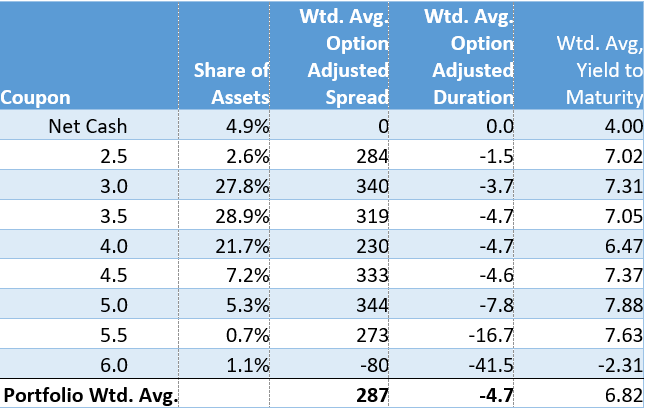 This is especially true because RISR’s portfolio is almost entirely allocated to mortgages with interest rates well below current levels, as seen in the table below. It would require a significant decline in mortgage rates to induce a material increase in prepayment speeds for our holdings.